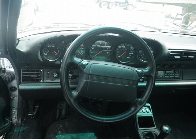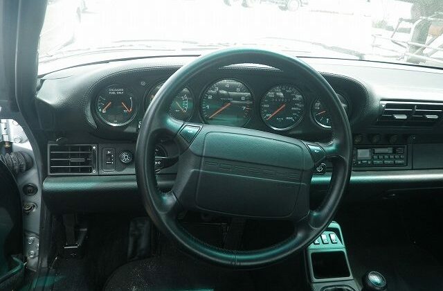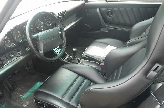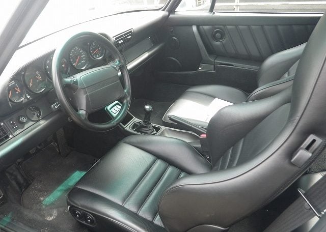 The 964 Turbo is considered one of the most beautiful 911s ever. All the classic 911 supercar styling cues are clearly there, from raised round headlights to dramatically flared wheel arches and fixed tea-tray rear spoiler with raised black border. Every curve is impeccably refined to improve aerodynamics and the bumpers are more integrated than on earlier 911s. These sporty looks are further accented by handsome aluminum 17″ wheels with five-spoke 964 Carrera Cup car design, two oval side tailpipes, aerodynamic door mirrors that became standard on all Porsche models, and black Brembo brake calipers. It’s easy to see why this model was so popular in Japan and throughout the world, selling a total of 3,660 units.