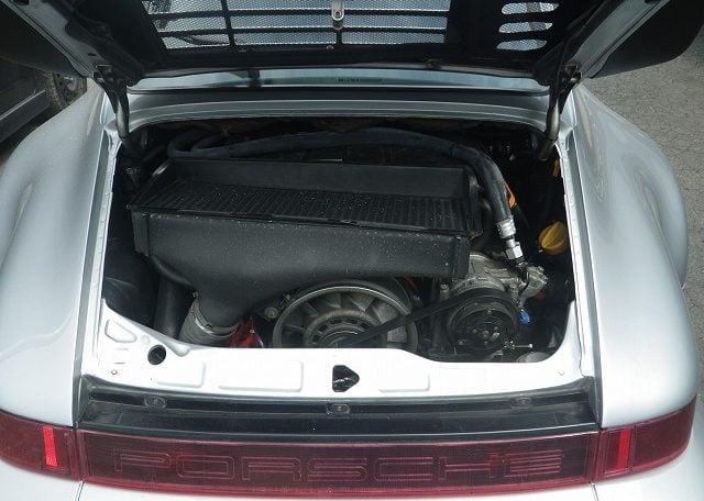 Porsche launched the 964 as a completely new 911 series in 1989. While borrowing heavily from the design of earlier 911s, it fully renewed the chassis and well over 80% of the vehicle’s components. The Turbo version was introduced two years later, in 1991. Its air-cooled, turbocharged, flat-six 3.3-liter engine with intercooler was taken from the 930 Turbo, but refined to run smoother with less turbo lag and produce a more powerful 320 PS (235 kW; 316 hp) at 5750 rpm.