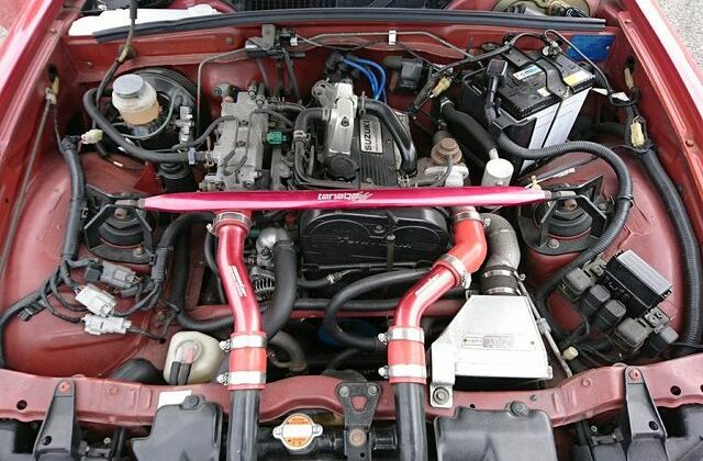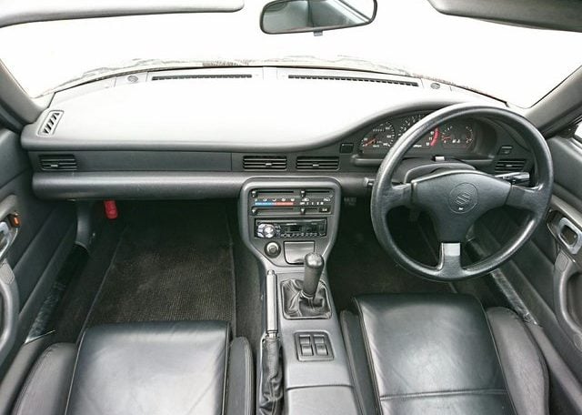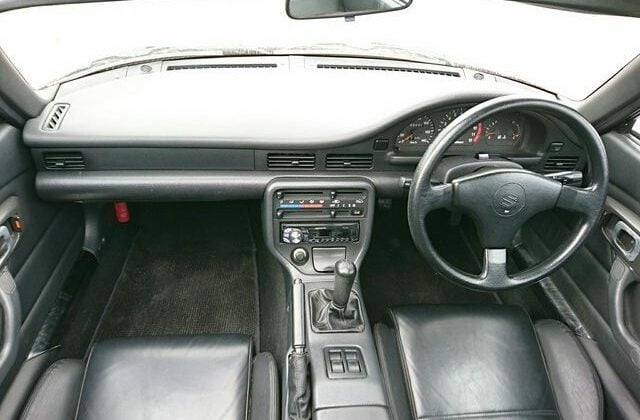 The turbocharged 12-valve inline 3-cylinder 657cc DOHC engine produces 63 hp (47 kW; 64 PS) at 6500 rpm, which may not sound like a lot. But it’s the maximum allowed for kei cars and receives a significant boost from the turbocharger and intercooler. The redline is 8,500 rpm and rumor has it that the fuel cuts at well over 11,000rpm!! One must also remember that the Cappuccino is extremely lightweight (725 kg) due to its small size and liberal use of aluminum components.