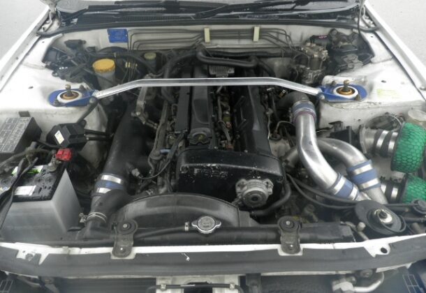 The twin-turbocharged DOHC 2.6-liter inline-six RB26DETT engine, with cast iron engine block and aluminum alloy cylinder head, is full of advanced features including three pairs of throttles for intake and water-cooled ceramic turbos. Nissan only published horsepower figures up to 280 PS, but many claim the output is closer to 320 PS.