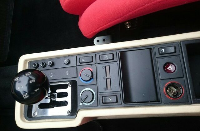 The interior is more comfortable and stylish than in the Testarossa. New seats provide more comfort and lateral support. The steering wheel, shifter and racing pedals are more ergonomic. The five-speed manual transmission is easier to shift. Instruments from the center console are repositioned under the center of the dashboard and climate controls are relocated. Other new features include an aluminum shift knob and redesigned handbrake lever, door panels and armrests.
