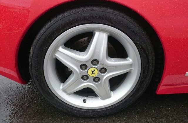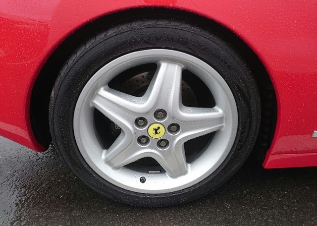 Ferrari also lowered and forward-shifted the weight of the midship engine and transmission to achieve a 41:59 front-to-rear weight distribution that improved stability and cornering precision during aggressive moves. Handling was further improved by a stronger more integrated chassis with significantly reduced chassis flex and increased torsional rigidity, quicker steering, 100-pound lower weight, larger wheels with lower profile tires, larger cross-drilled front brake rotors and a tweaked, race-derived suspension.