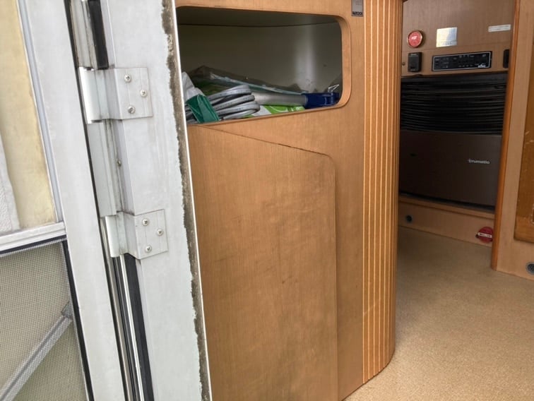 The sofas are comfortable and large enough for big passengers. Lightweight, handsomely finished cupboards and cabinets keep your clothes, sports gear and other personal possessions organized. Window blinds roll down with ease when you want privacy or shade. If the weather gets warm, open the roof vent or activate the air conditioner to stay cool. We recommend the dual air conditioning option with front and rear units.