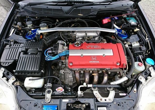 The hand-ported, naturally aspirated 1.6-liter, 16-valve DOHC VTEC B16B engine in this 1999 GF-EK9 Type R model is famous for producing high output per liter of displacement. Its 185 PS (136 kW; 182 hp) horsepower, 8,000 to 10,000 rpm redline and close-ratio 5-speed manual transmission make driving super fun. Turbocharged competitors may offer more torque, but nothing offers more bang for the buck in this price range than the Civic GF-EK9 Type R.