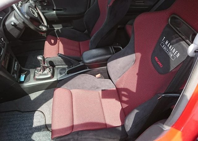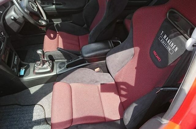 On the outside, the Tommi Makinen Edition had an optional special paint package, Passion Red with grey, black and white stripes, that was inspired by the Tommi Makinen WRC works car and wore the same design Enkei 17” wheels. On the inside, the car came equipped with Recaro bucket seats with the Tommi Makinen logo stitched into the back rest.