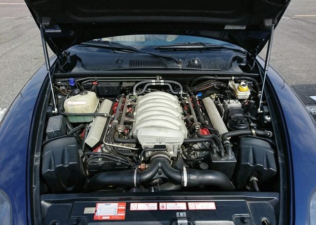 The powerful all-aluminum, 3.2-liter V8 engine accelerates you from 0 to 100 km/h in 5.12 seconds and delivers a top speed of 280 km/h (174 mph). Featuring 32 valves, two overhead camshafts per bank, two crossflow turbochargers, “drive by wire” electronic throttle control, and your choice of 6-speed manual or 4-speed automatic transmission, it generates 370 PS (272 kW; 365 hp) at 6250 rpm and 491 N·m (362 lb·ft) at 4500 rpm. This supercar performance comes on strong and smooth with a signature Maserati engine roar that thrills the senses.