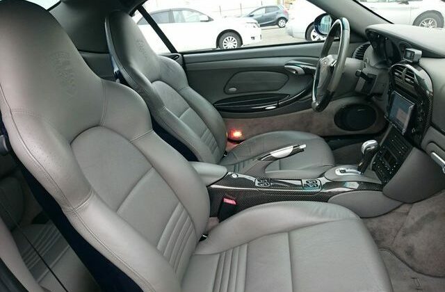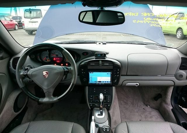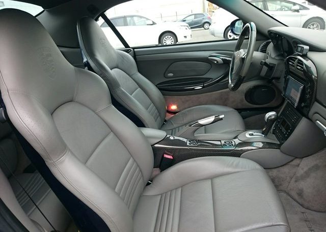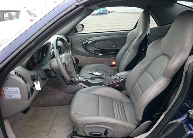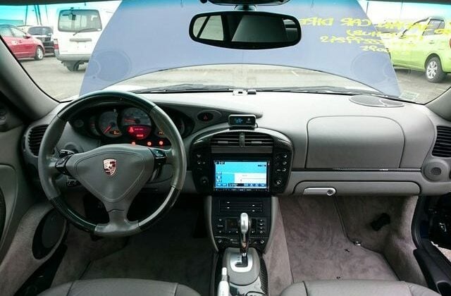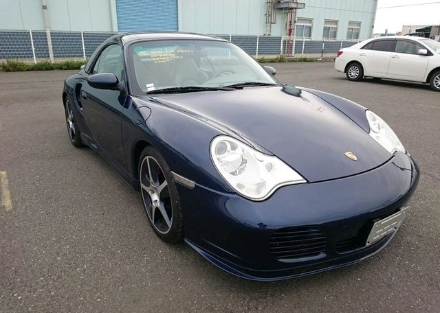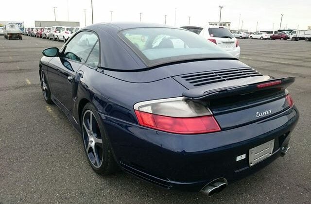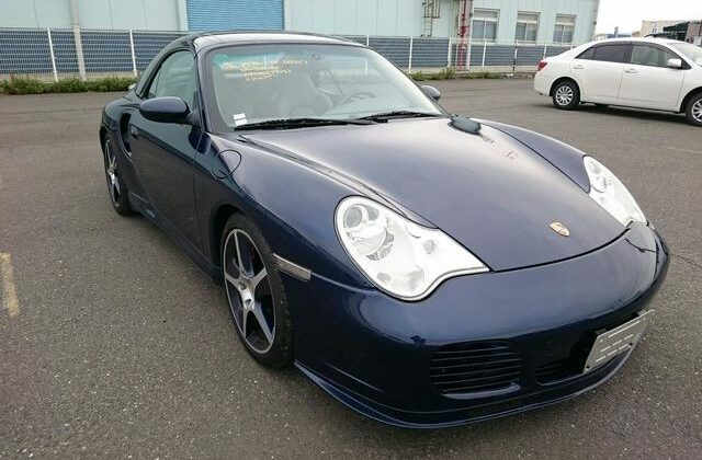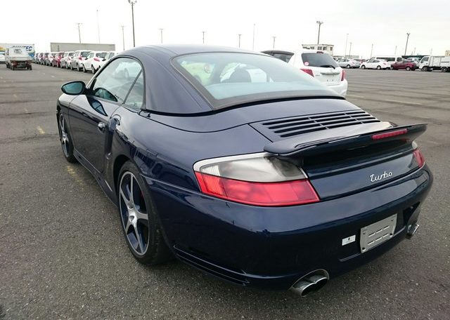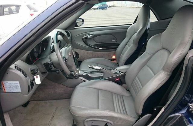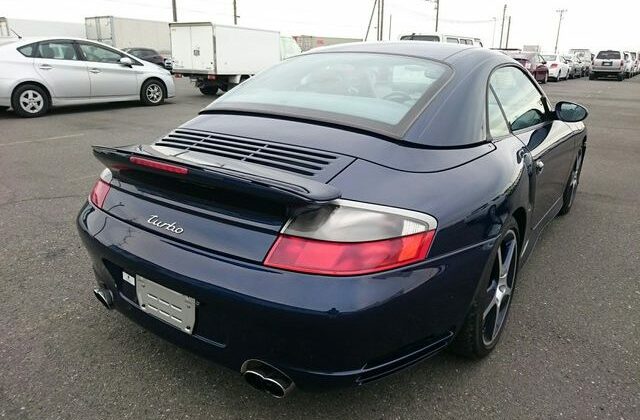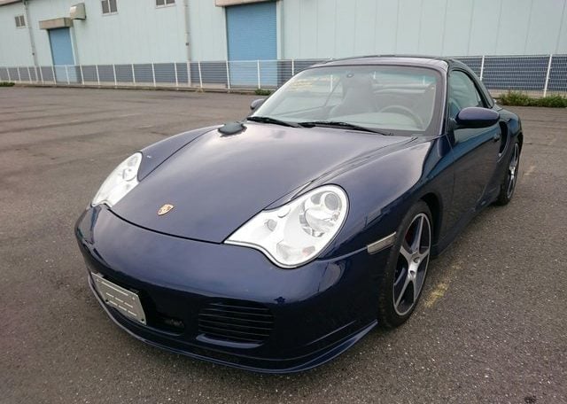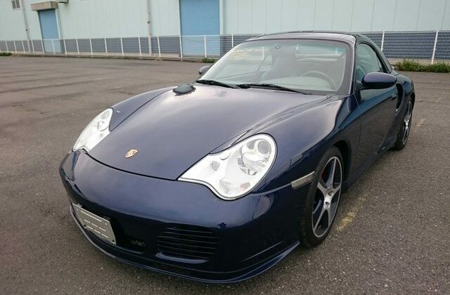 This beautiful dark blue 2004 Porsche 911 Turbo Cabriolet (996) was recently acquired by Japan Car Direct in Japan, where many enthusiasts are finding the best deals on used 911s. Its smooth body with distinctive headlights, rear spoiler and removable roof features handsome star wheels with body-colored detailing.