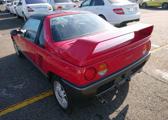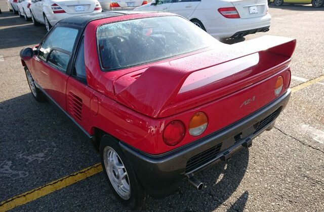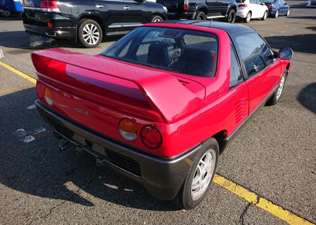 The thing to do is to let us know what Kei Sports Car you want, consult with us about availability, and we’ll help you find what you’re looking for at the well-organized Japanese used car auctions or at the secondhand car dealers that we deal with here in Japan. We’ll also arrange the (necessary, absolutely necessary, my brothers) pre-bid inspection of your target vehicle, and, when you have won it, we’ll prepare your export documents and shipping as well. This is what we do. This is what we are. Japan Car Direct: A Japan-based used car exporter that can get you a good Japanese Kei Sports Car, like this red spaceship fighter rocket Mazda AZ-1 here, and ship it to you. Direct.