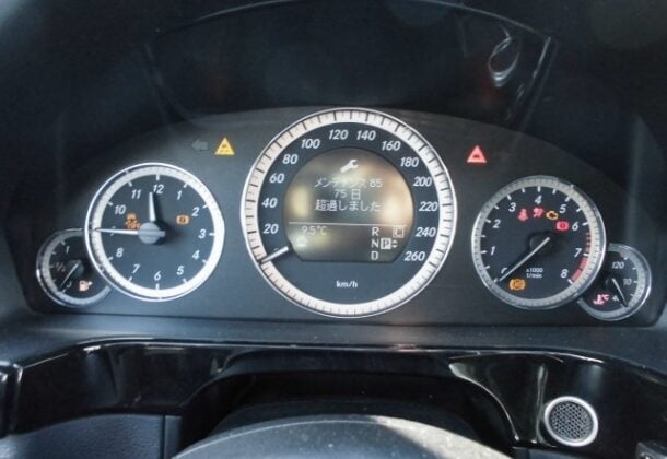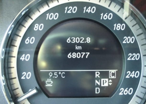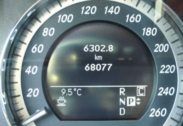 Buying a good used Mercedes Benz from Japan means that, for reasonable money, you are getting a car in better condition and with lower miles on him than you can get for the same money if you buy in Europe. It’s very straightforward. Japanese owners of high end German machines absolutely treasure them and, interestingly enough, don’t put anywhere near the number of kilometers on their machines as is typically the case in Continental Europe or the UK. Check out the odometer here, guys, look at this: only 68,077 kms (42,301 miles) on our used E350AMG:
