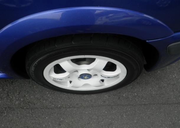So he’s a happy camper with his used S16, a really, really happy camper. But I don’t have to take his word for it, I’ve seen how well that little blue Peugeot handles. To my chagrin! You see, we both work down in Gotemba and there’s been a couple of times that we were coming home at the same time, up the twisty mountain road that makes it so much fun to have my Miata. Now, I’ve got the NB-2 Miata, so: stiffened chassis as stock, guys; and I’ve got the lighter 1.6 motor in there, so I’m saving some pounds and thus the car is even more optimized out of the box for handling, cornering and braking; right? O.K. But each time we’ve come home together, him in his 106 S16 and me in my Miata, that little French car, that little Gaston Bleu, has beaten me! I won’t say he’s spanked my ass, but he’s got a clear cornering edge on me, a clear edge. Dash it all! (And here’s a lovely yellow used 106 S16 for sale here in Japan right now.)