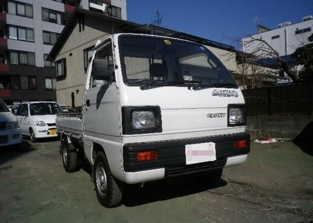 The older Suzuki Carry minitrucks are one of our strongest exports to Australia and the US because they clear the heavy restrictions on used vehicle imports to those countries and because, as you can see with this fine little guy here, then have lots of life and many miles of fun and productive off-road, farm, and in town service and pleasure driving left in them.