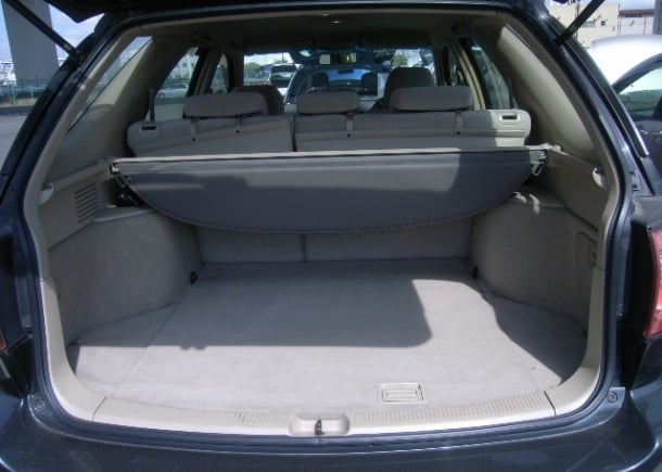 The rear seats are split 60:40 and independently slide. They also fold forward with a touch to enlarge the rather spacious rear luggage area, which features a removable tonneau cover.