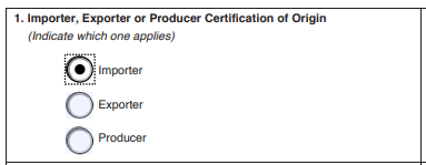 In the first section, select “Importer” since you are the one importing the vehicle and submitting this form.