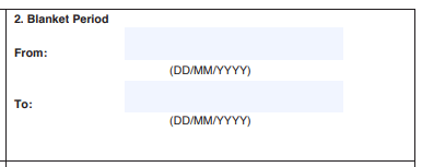 For Section 2, fill in today’s date in the “From:” and for the “To:” you can just set it arbitrarily to a date that is a month away.