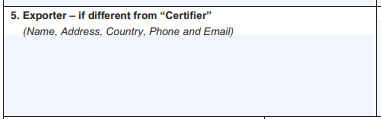 Section 5 is the information about the exporter, and if you have purchased your vehicle from Japan Car Direct, then you will need to put our information in this section. You can find our info here: