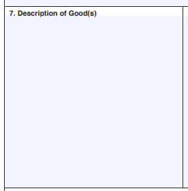 Section 7 is the description of the goods being imported and here it will contain information specific to your vehicle. This is the format that we recommend.