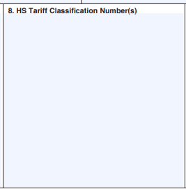 Section 8 is the HS classification number. The HS is a standardized system for classifying traded products, used by customs authorities worldwide to identify products and determine applicable duties and taxes. You can checkout the full documentation here.