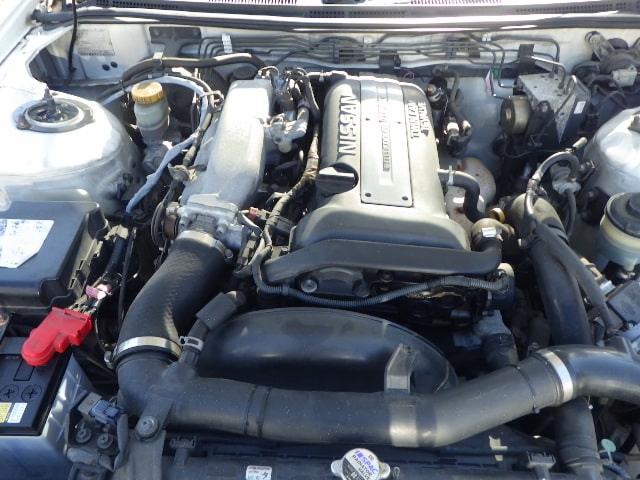 Japan Car Direct will soon be shipping some nice S15 Silvias to North America, one to Canada via the port of New Westminster (Vancouver) and one to the USA via the port of Tacoma. We’ve also just shipped a beautiful white S15 to the UK via the port of Southampton. A really fine unit. Let me show you a three quarter front view photo and a shot of the engine of that baby.