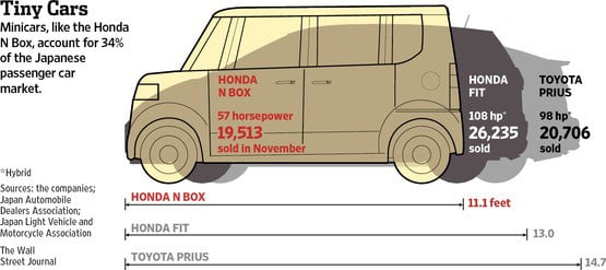 Small: Currently regulated to less than 4.7m long, 1.7m wide and 2m high with an engine displacement under 2000cc.