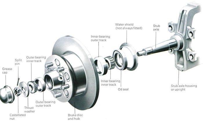 – Jack up front of vehicle and wiggle front wheels to test for front wheel bearing wear