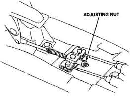 – Parking brake is pulled or depressed and the amount of play of the lever or pedal is measured. Anything more than 2-3 clicks should be adjusted