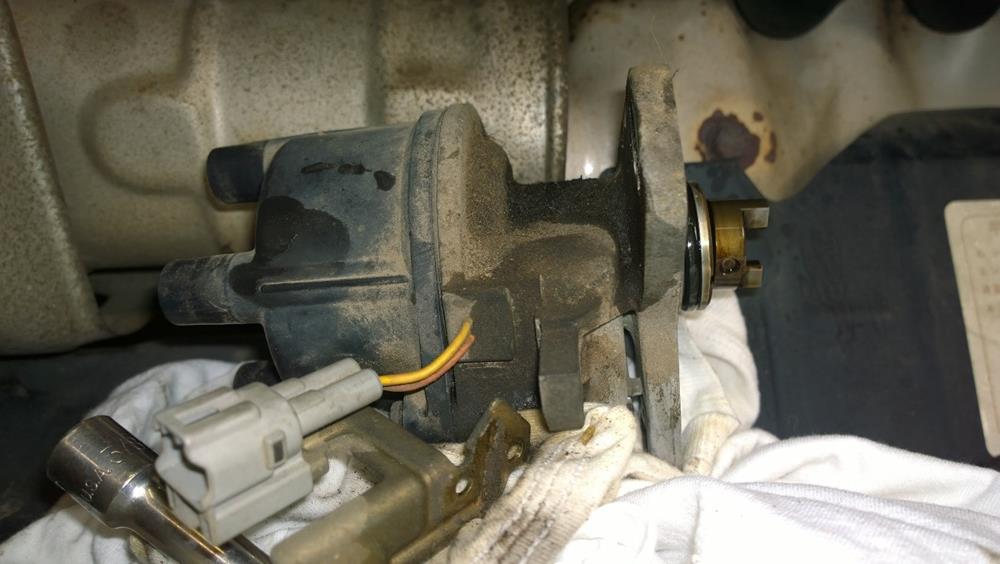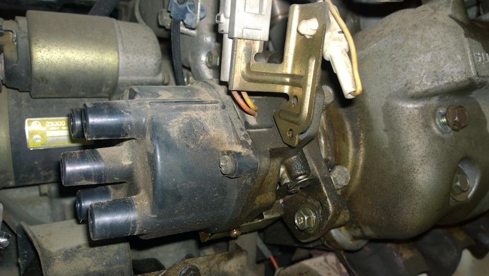 Unclip the wires and remove the two bolts mentioned above, making sure you do not rotate the base of the distributor when you remove. The tang is offset so it only fits one way but it is still a good idea to remember how it is clocked when you remove the distributor for easy installation.