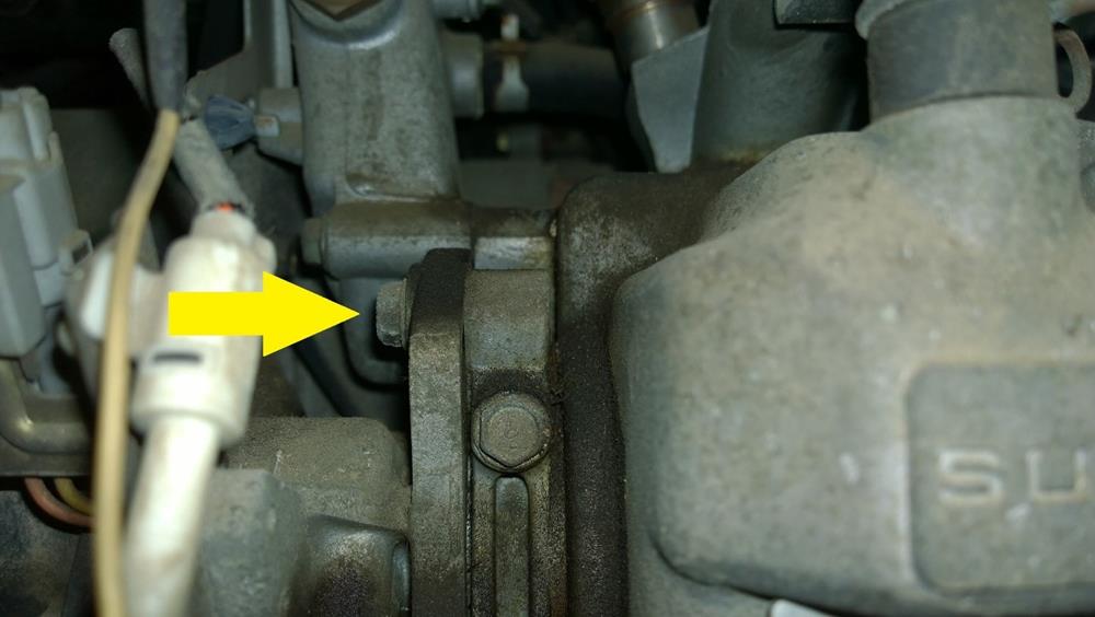 This is one of two bolts (bottom) that holds the distributor to the engine.